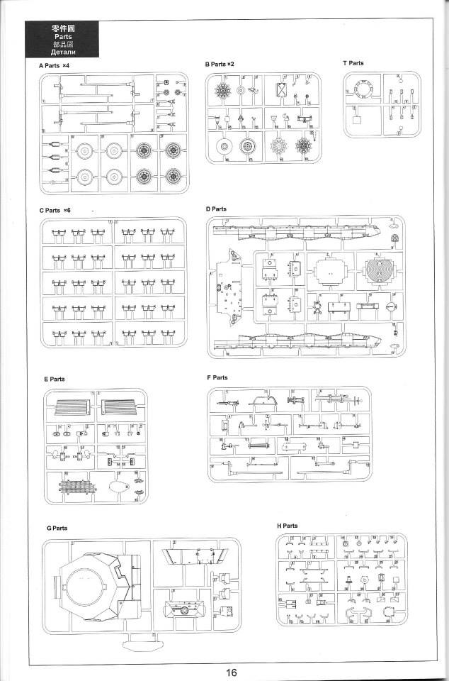 Sprue E - engine exhaust grilles, grouser rack, driver's hatch, idler adjuster, various fittings
